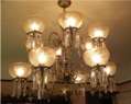 Probably the most dramatic fixture in this house of many remarkable elements is the enormous twelve-light chandelier which hangs above the dining room table. Ed believes that it's called a "wedding cake" chandelier and he has seen others in historic houses he has visited. The Logans said the chandelier had fallen once - right onto the table below it. There are a few dents in the table which evidence the calamity, but the chandelier is perfectly whole. Not that all the glass shades weathered the fall - two did break into smithereens. However, quite fortuitously, the previous owners had presciently provided exactly two extra shades!