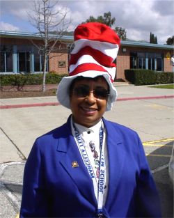 Linda Vista Principal Marcella Fehely donned the Seussian Hat
