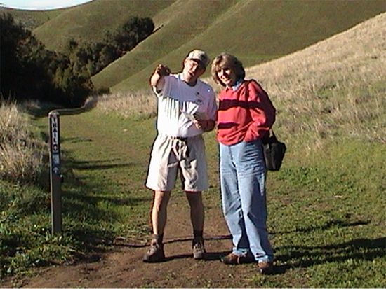 Stormont, trail patrol volunteer, shows a hiker the Santa Clara
