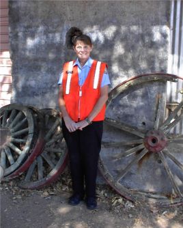 in her crossing guard uniform - |