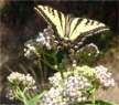 Another plant in flower at this time is Narrow-leaved Milkweed (Asclepias fascicularis). A 3’ tall perennial which dies back to the ground each winter, it is a favorite of butterflies as a nectar plant as well as a larval host plant. The tiny white-pink flowers occur in dense umbels, and draw butterflies like pins to a magnet. Added water can make it invasive, but clay soil and a minimum of irrigation keeps it well-behaved. Give it full sun and sit back, and let the swallowtails and monarchs beat a path to your garden.