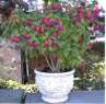 The plants they’ve left untouched include some which one would suppose deer would definitely deem delectable. For instance, they haven’t touched the upright fuchsias which are growing in an easily reachable pot. Perhaps those little hot pink ballerinas are not as sweet as they look. The deer don’t seem to desire the lily-turf liriope even though its flower spikes are fat with blossoms.
