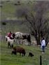 A visual treat awaited near the top of the hill. At the property we’ve come to call “the rabbit ranch” (because we’ve heard that’s what they raise there) a group of people was cavorting among a cluster of animals. There were sheep with new lambs, goats and even a horse. Children were taking turns hugging the lambs against the background of emerald green hills and enamel gray skies. They waved. We waved.
