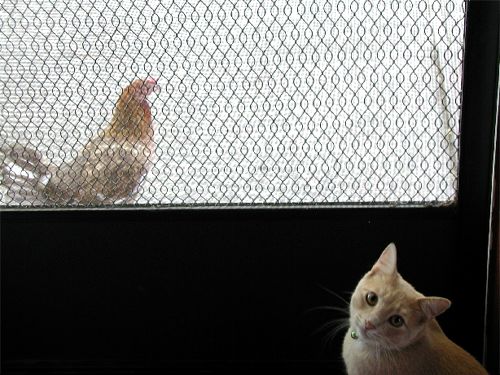 Spicy Mike (a Schuster Es Thompson look-alike) waits for the show to start. Chicky, the Giant, lurks outside the screen door.