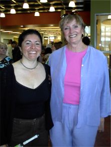 JenJoy Roybal of the S.J. Public Art Program and library patron Charlene Laymon