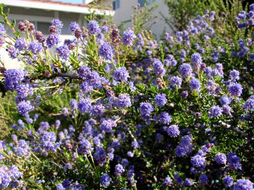 During spring, the blossoms of Ceanothus dentatus attract many butterflies and bees