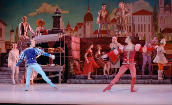 Swords are drawn in the street of old Verona in Dennis Nahat's stunning production of ROMEO AND JULIET