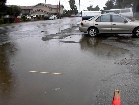 front of Linda Vista School. The white object is a yardstick floating in a many