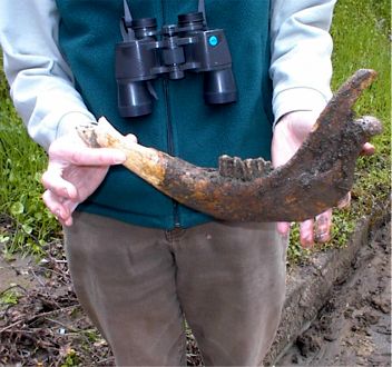 DJ Johnson bravely handles a muddy unearthed jaw bone |